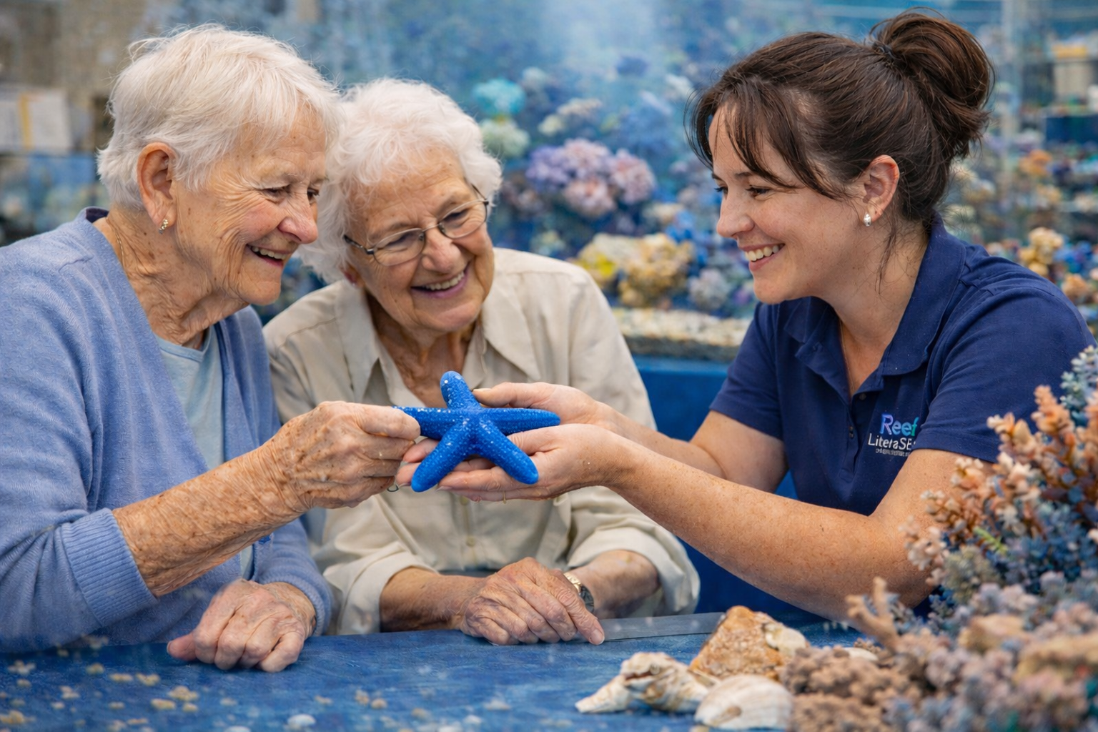Engaging, accessible sessions tailored to older adults, community groups, and a wide range of abilities, encouraging conversation, memory, and connection through the wonders of the ocean.